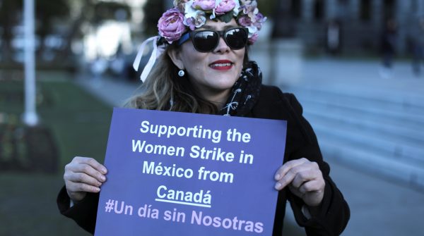 Mexican-Canadian woman and girls, and allies in Victoria B.C. stand in solidarity with Mexico’s national…