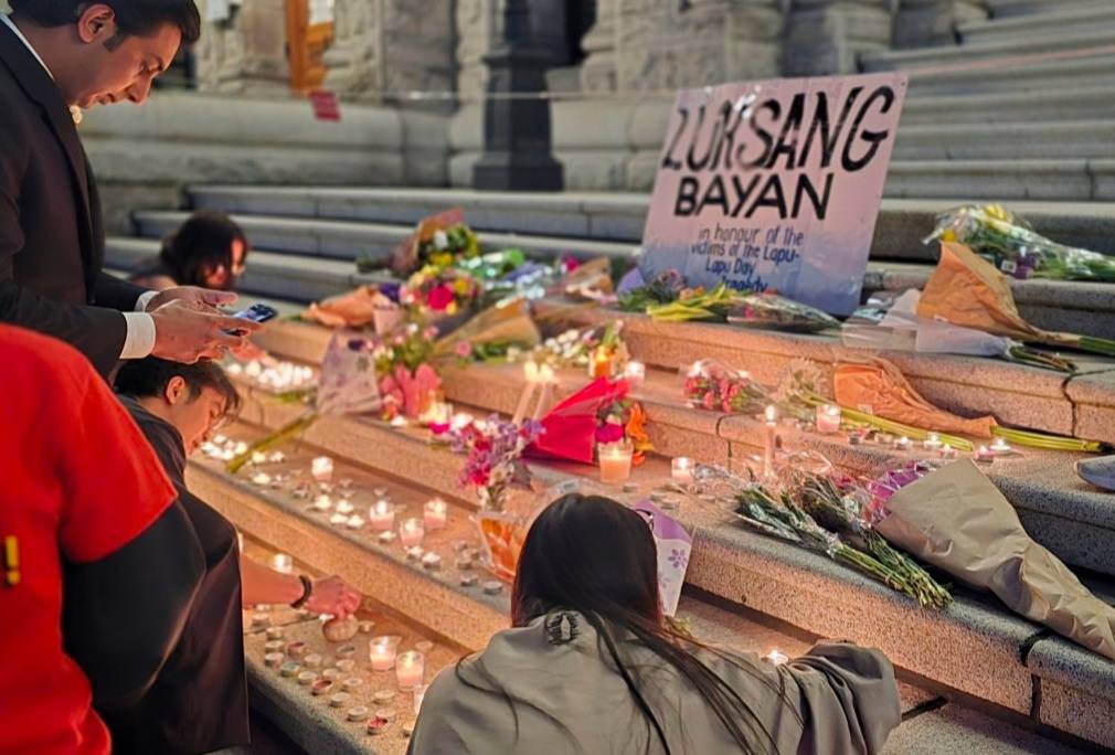 In response to community need—and an immediate outpouring of support—Anakbayan Victoria began coordinating a vigil for Sunday, April 27, less than 24 hours after the attack. Details about the evening gathering on the steps of the B.C. Legislature were shared at 4:30 p.m. By 8:00 p.m., more than 150 people had assembled in collective mourning. As Eileen recalls, “Even here in Victoria, there were so many people who were feeling this so deeply.” A memorial of flowers, condolences, and candles remained on the steps for many days following the vigil and a book of condolences was made available in the Hall of Honour for anyone to sign.